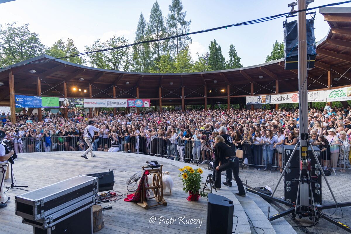 Prawdziwe tłumy przyciągnął jednak występ gwiazdy wieczoru – zespołu Baciary. Widownia wypełniła się po brzegi – nie tylko mieszkańcami Rabki, ale też gośćmi z okolicznych miejscowości i turystami. Już od pierwszych dźwięków wiadomo było, że to będzie niezapomniany wieczór. Żywiołowa muzyka, przebojowe teksty i niepowtarzalna energia zespołu porwały wszystkich – od najmłodszych po seniorów. Amfiteatr dosłownie pulsował w rytm największych hitów Baciarów, które wspólnie śpiewała cała publiczność.