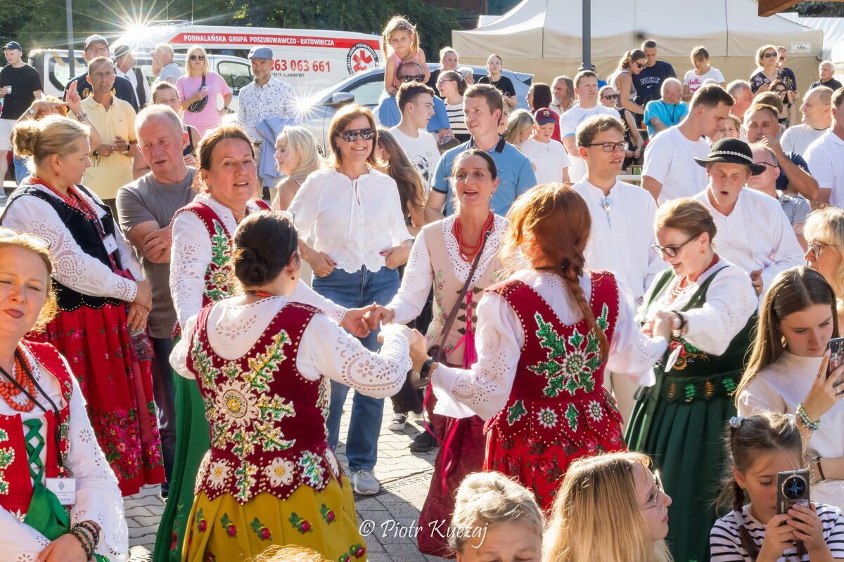Już od rana w Rabce dało się poczuć wyjątkowy klimat – na placu przed amfiteatrem zgromadziły się poczty sztandarowe, a o godzinie 11.00 odprawiono uroczystą Mszę Świętą. Po niej scenę przejęły zespoły regionalne: „Robcusie”, „Mali Spiszacy”, „Szafranki” i „Szafrany”, które przyciągnęły publiczność barwnymi strojami, żywą muzyką i autentycznym folklorem.