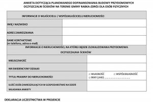 Warunkiem przystąpienia do programu jest złożenie Ankiety w Urzędzie Miejskim w Rabce-Zdroju w określonym terminie: w formie papierowej lub elektronicznie: ePUAP, na adres do https://epuap.gov.pl/wps/portal/strefa-klienta/katalog-spraw/sprawy-ogolne/ogolne-sprawy-urzedowe-2/pismo-ogolne-do-podmiotu-publicznego-nowe