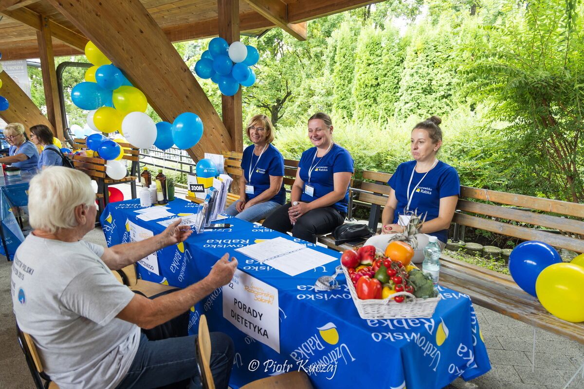 W strefach tematycznych odbywały się m.in.: inhalacje solankowe, porady fizjoterapeutyczne i dietetyczne, badania profilaktyczne (ciśnienie, cukier, testy HCV), masaże dłoni, konsultacje psychologiczne oraz analiza składu ciała i stanu skóry. Dzieci mogły korzystać ze Strefy Rabkolandu, dmuchańców, toru przeszkód Zbójnika, malowania twarzy, zabaw z chustą czy pokazów rękodzieła.