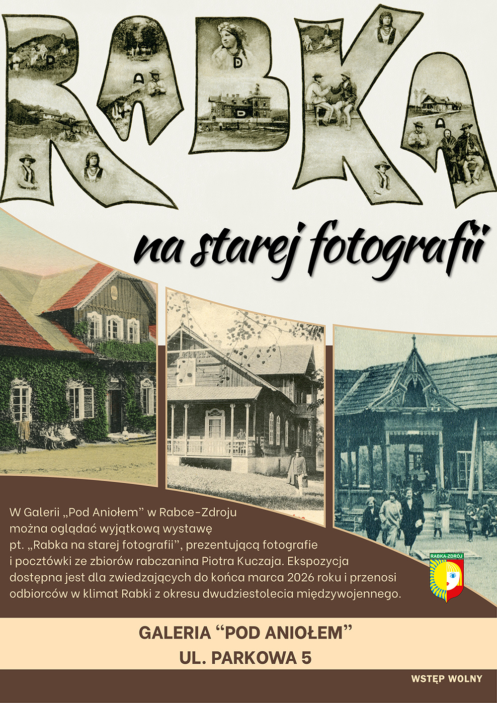 W Galerii „Pod Aniołem” w Rabce-Zdroju można oglądać wyjątkową wystawę pt. „Rabka na starej fotografii”, prezentującą archiwalne fotografie i pocztówki ze zbiorów rabczanina Piotra Kuczaja. Ekspozycja, dostępna dla zwiedzających do końca marca 2026 roku, przenosi odbiorców w klimat uzdrowiska z okresu dwudziestolecia międzywojennego, ukazując jego dawną elegancję, rytm życia i niepowtarzalny charakter.