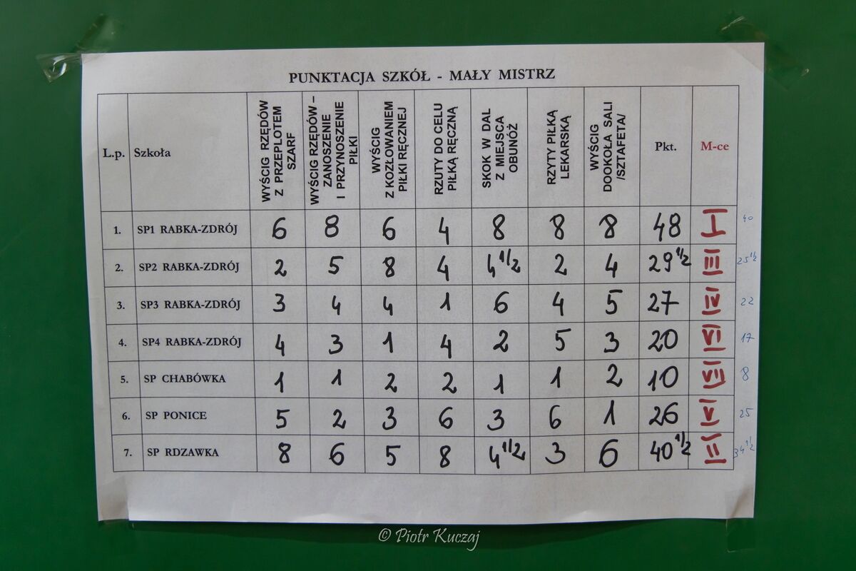 Po emocjonującej rywalizacji tytuł Mistrzów zdobyła reprezentacja Szkoły Podstawowej nr 1 w Rabce-Zdroju. Drugie miejsce wywalczyli uczniowie ze Szkoły Podstawowej w Rdzawce, a na najniższym stopniu podium stanęła Szkoła Podstawowa nr 2 z Rabki-Zdroju.
