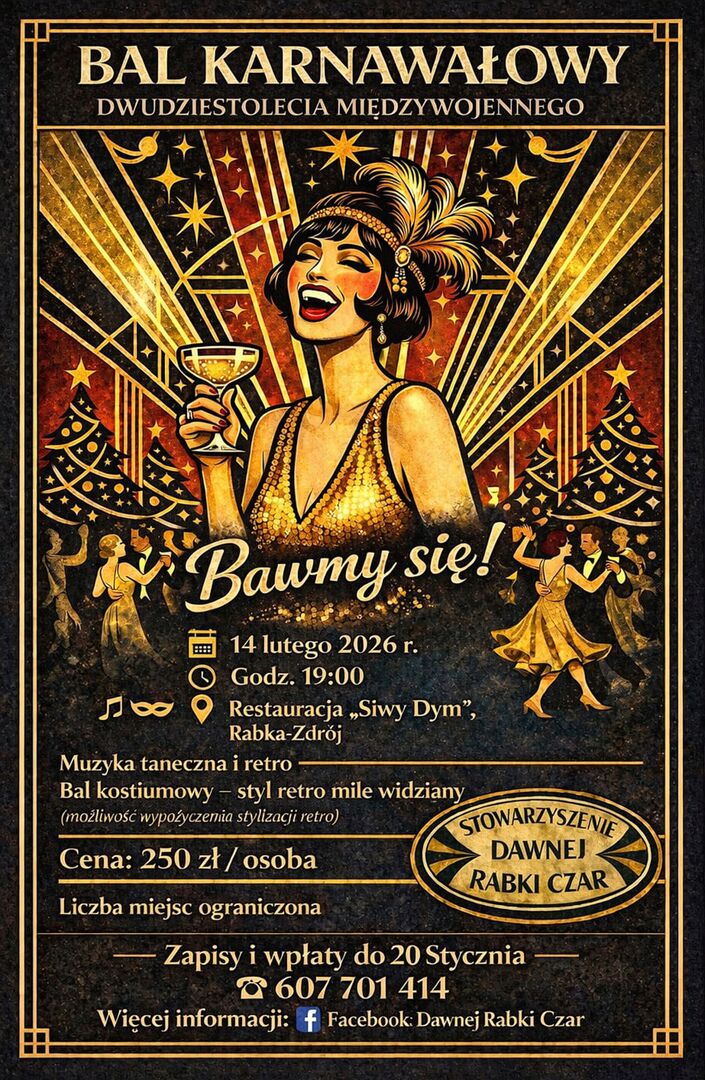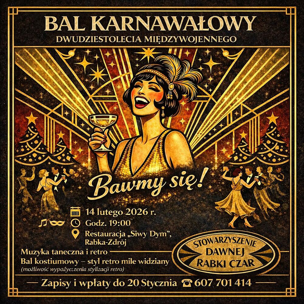 Jednym z pierwszych wydarzeń w nowym sezonie będzie Bal Karnawałowy inspirowany latami 20. i 30. XX w., który odbędzie się 14 lutego 2026 r. w restauracji Siwy Dym w Rabce-Zdroju. Goście będą mogli przenieść się do czasów eleganckiego międzywojnia, bawić się przy muzyce retro, tańczyć pod okiem wodzireja, a nawet skorzystać z atelier fotograficznego i zrobić sobie pamiątkowe zdjęcia w stylizacjach epoki. Bal ma charakter przebierany, a organizatorzy zachęcają do udziału w autentycznych strojach lub stylizacjach retro - dla tych, którzy ich nie posiadają, dostępna jest Szafa Retro - wypożyczalnia kostiumów.