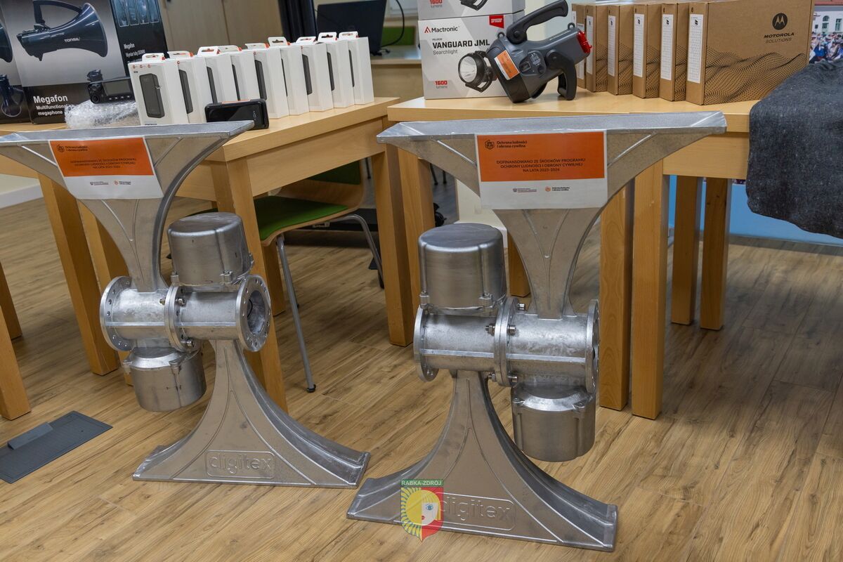 Jednym z kluczowych zakupów była przyczepa do transportu wody pitnej o pojemności 5 000 litrów (154 000,00 zł). Sprzęt ten ma istotne znaczenie w przypadku klęsk żywiołowych, umożliwiając szybkie dostarczanie wody mieszkańcom oraz osobom przebywającym w punktach ewakuacyjnych. W ramach systemu ostrzegania i alarmowania zakupiono także syreny oparte na głośnikach szczelinowych (85 510,00 zł).