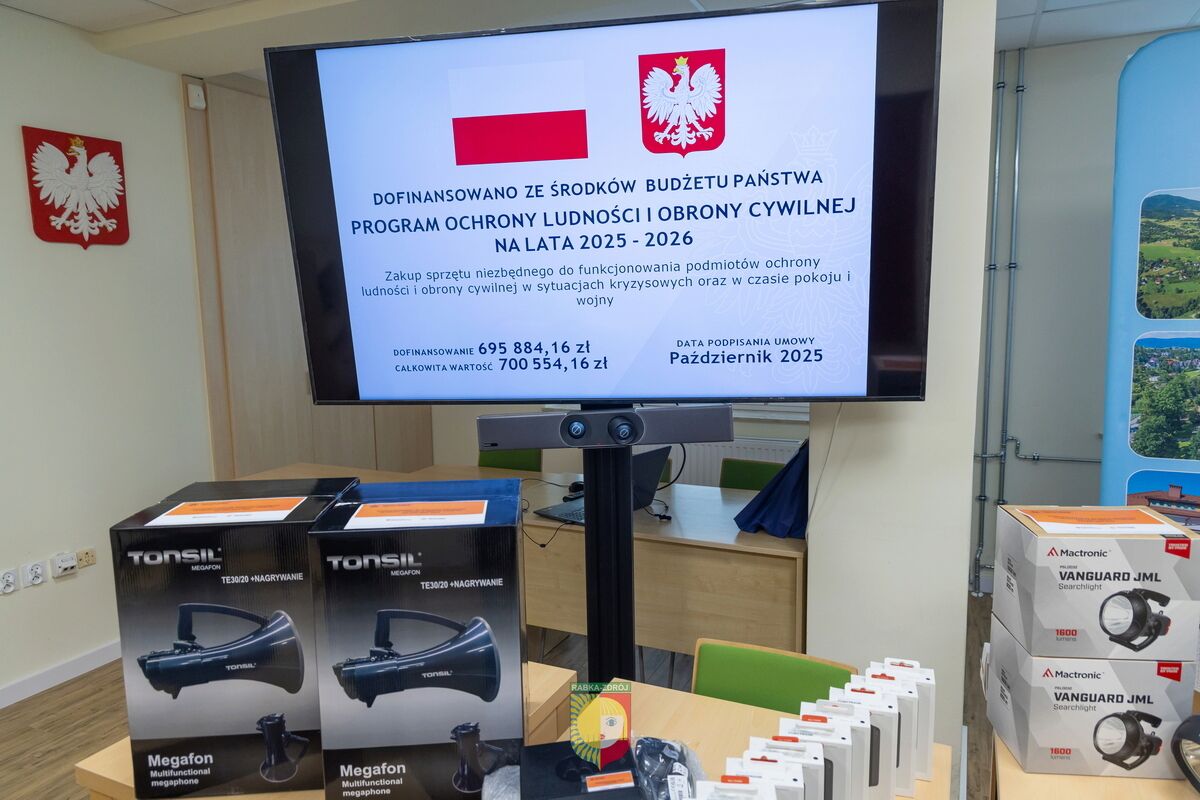 W czwartek, 12 lutego, w Rabce-Zdroju odbyło się oficjalne podsumowanie realizacji zadań w ramach Rządowego Programu Ochrony Ludności i Obrony Cywilnej na lata 2025–2026. Podczas spotkania zaprezentowano zakupiony sprzęt oraz omówiono działania podjęte przez samorząd na rzecz zwiększenia bezpieczeństwa mieszkańców.