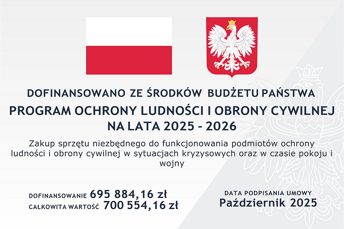 Zakupiony sprzęt ma służyć zaspokojeniu podstawowych potrzeb Mieszkańców w sytuacjach kryzysowych, w tym także w przypadku konfliktu zbrojnego na terenie naszego kraju.