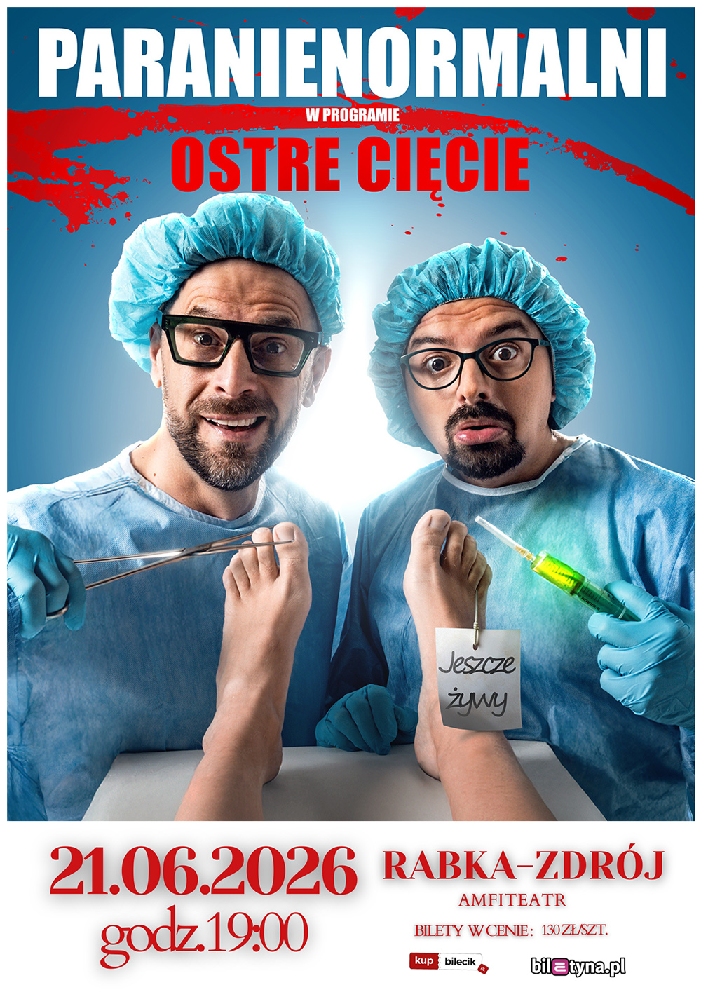 Rabka-Zdrój 21 czerwca 2026 roku stanie się stolicą dobrego humoru. Na scenie amfiteatru zaprezentuje się Kabaret Paranienormalni, który przyjedzie do uzdrowiska z najnowszym programem zatytułowanym „Ostre cięcie”. Początek występu zaplanowano na godz. 19.00.