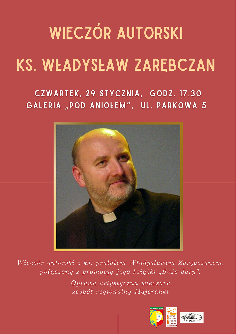 Centrum Kultury, Sportu i Promocji w Rabce-Zdroju zaprasza na wyjątkowe spotkanie literacko-duchowe. W czwartek, 29 stycznia o godz. 17.30, w galerii „Pod Aniołem” w willi Anioł przy ul. Parkowej 5 odbędzie się wieczór autorski z ks. prałatem Władysławem Zarębczanem, połączony z promocją jego książki „Boże dary”.