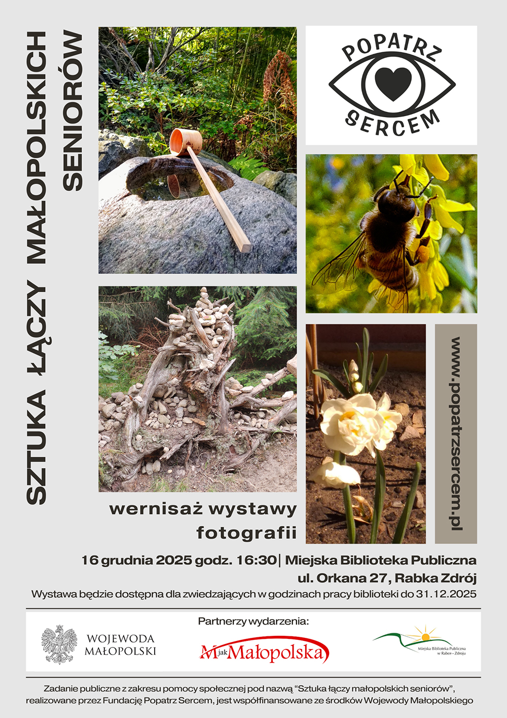 Fundacja Popatrz Sercem wraz z portalem M jak Małopolska zaprasza na wernisaż wystawy fotograficznej "Sztuka Łączy Małopolskich Seniorów" połączony z warsztatami fotograficzno - dziennikarskimi dla seniorów.
